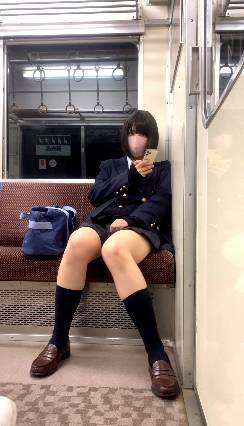 JK盗撮日記58 青チェック東京○川女子ゆるふわパーマJKを電車ボックス席で盗撮【対面撮影バレ・※対面25分越えの超完全版】