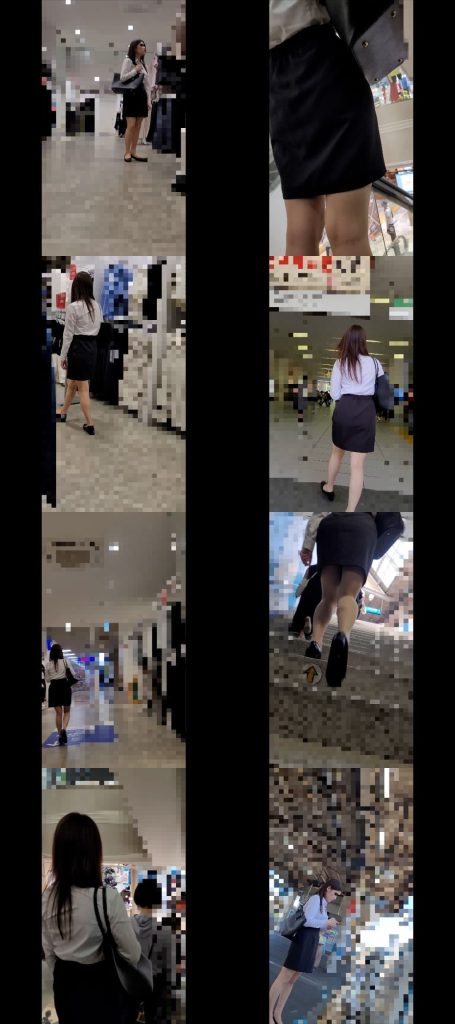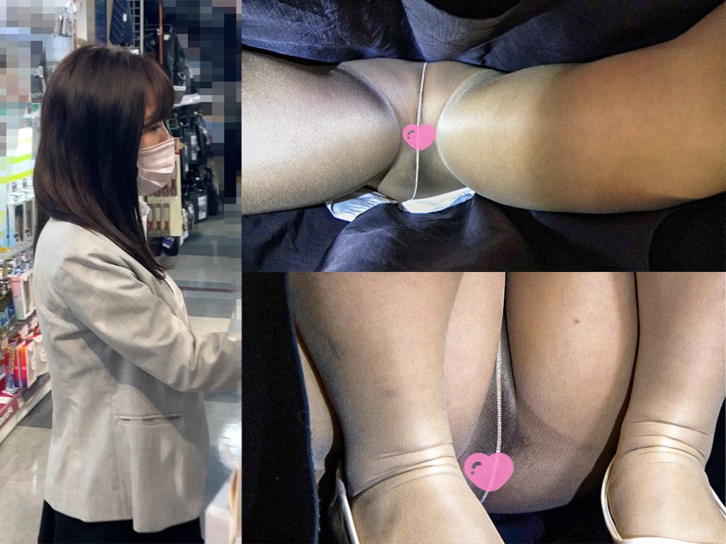 OLノーパン逆さ撮り▷股空きストッキングで美マンコ丸見え/オフィスカジュアルの美人さん【パンチラ盗●】