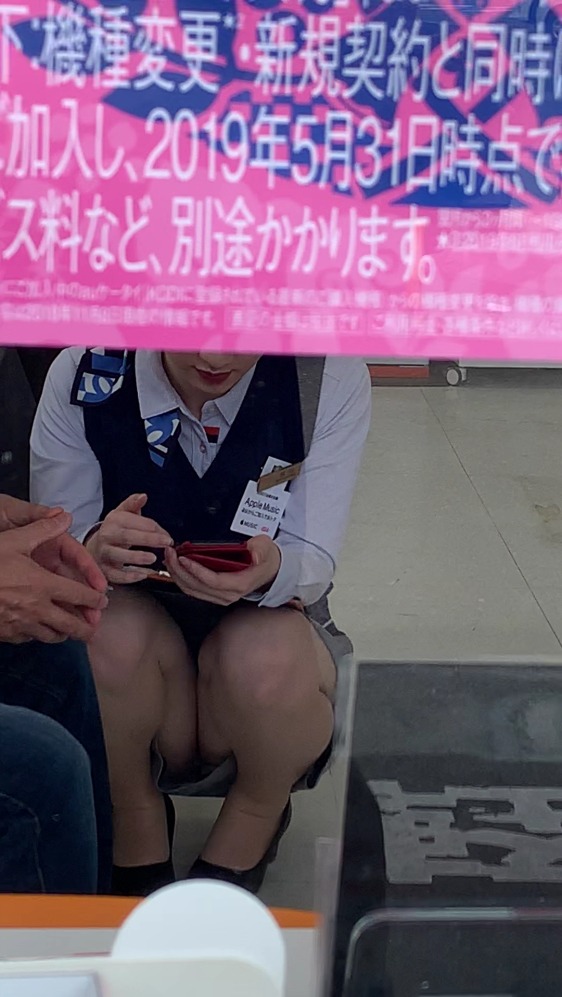 ショートカット美人携帯ショップ店員さん しゃがみパンチラ 盗撮風