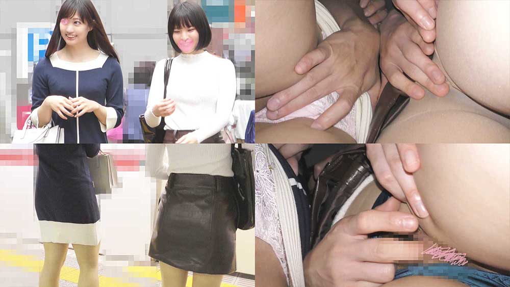 【美女二人に大接近】【溢れる乳首&パンスト越しのセクシーショーツ】