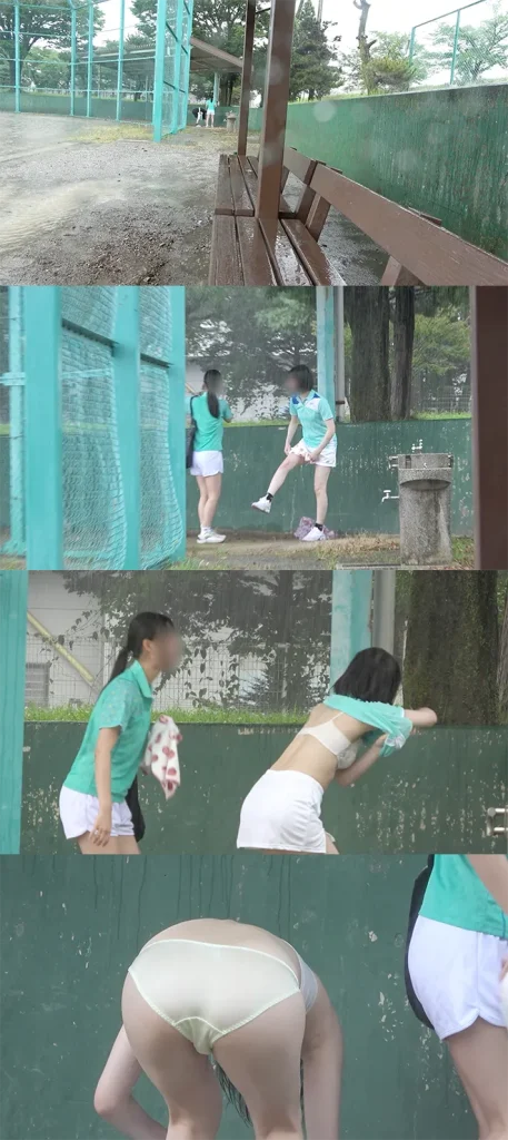 (2人収録!)雨の濡れ濡れお着替えはおっぱいおま○こ丸見え状態!