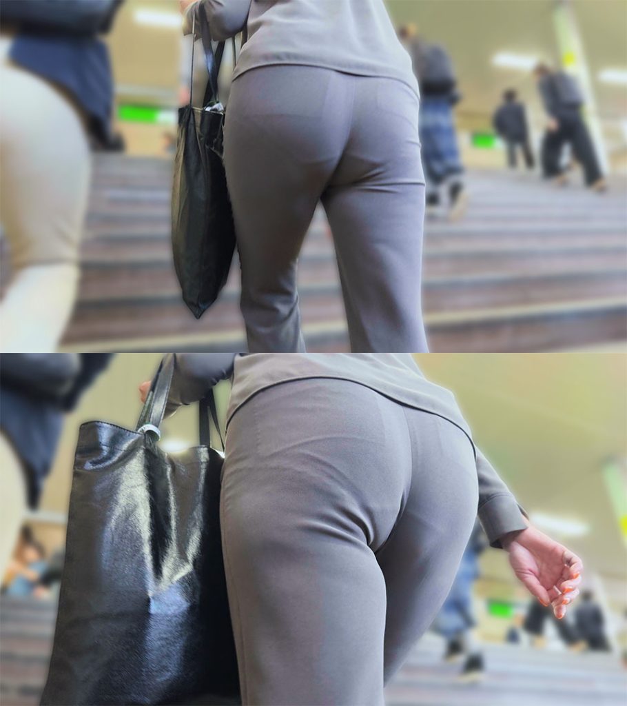 素人OLのパツパツ美尻を階段下から堪能!自慢のケツを突き出しながら浮き出すクロッチで男をたぶらかす!