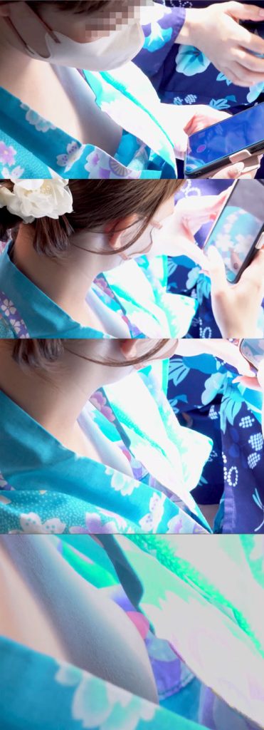 【ノーブラ浴衣美女の納涼チラ】【先端までとらえた美しい横乳&裾からのぞく華やか白パンティー】