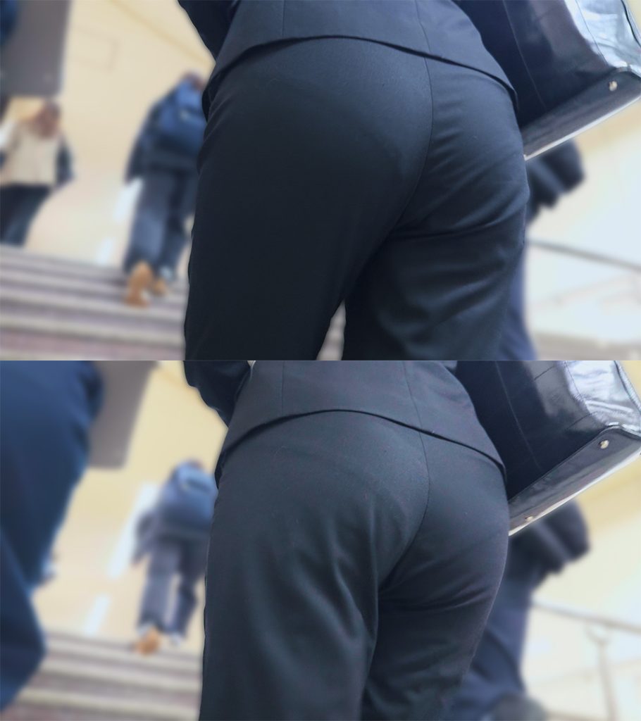 【405】高スタイルの黒パンツOLさん、見事な陰影を見せつける階段登り!