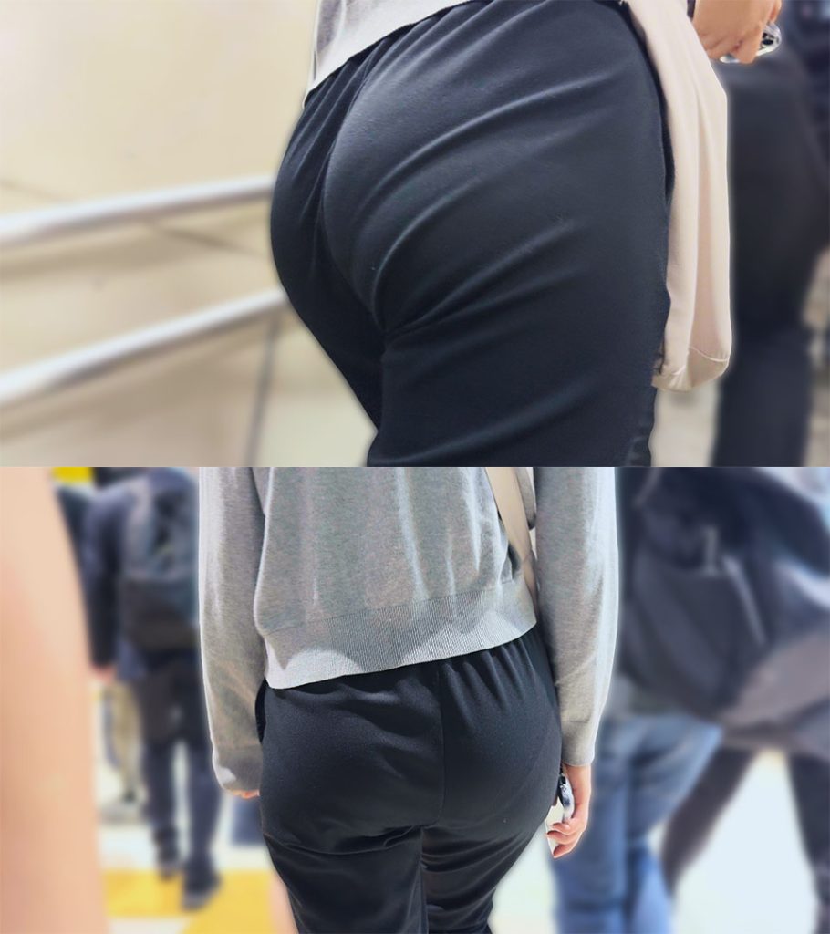 【着衣:レギンス・ニーハイ】アチャー!前も後ろも食い込みがヤバ過ぎですww長身美女のニーハイ&レギンス尻好きには堪りません♪