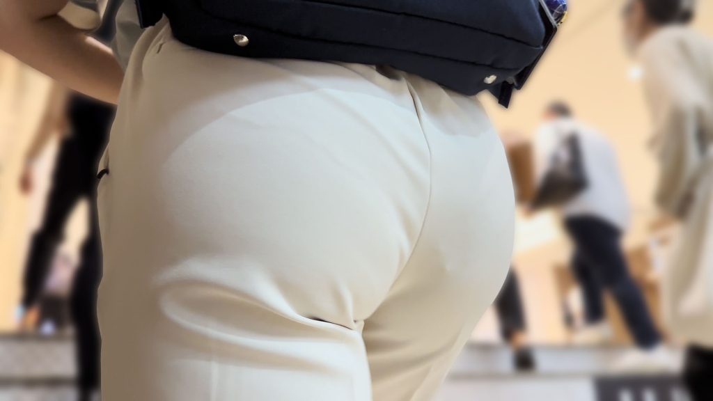 歩行記録0108「Pライン浮かぶ白スラックスOLを近接撮影」