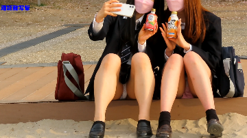 海にいた激ミニスカ制服女子を写撃
