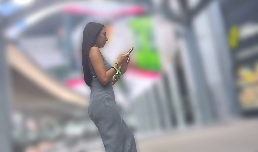 【横からの眺め356】長身モデル風のお姉さんは推定Fカップ!!