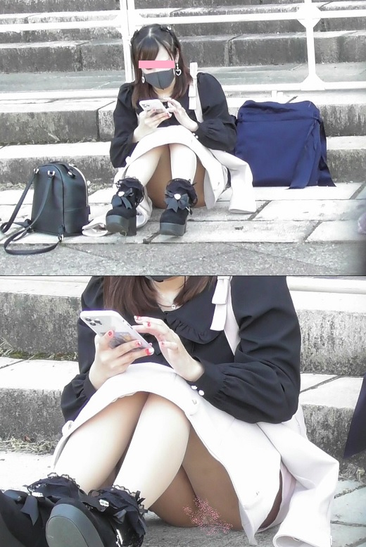 寒さでも座りパンチラお嬢さん