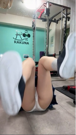 完全顔出し♡トレーニングウェアと超超ミニスカで筋トレに挑戦♡