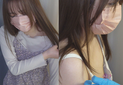[ワクチン接種/2名]ブラ紐を引っ張られこの表情に・・・!セクハラ編[胸チラ]