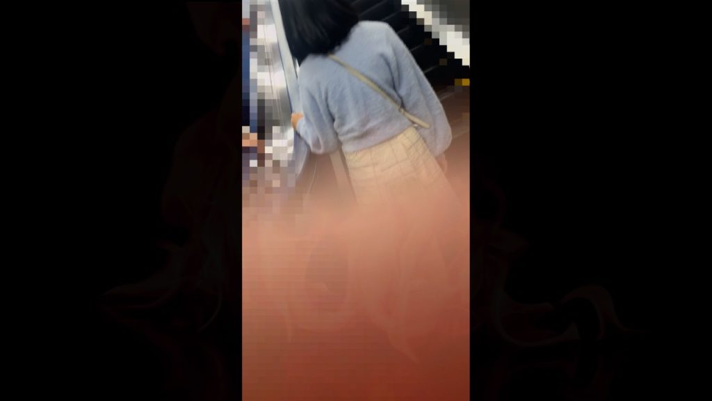 【5日間連続で逆さ撮り】マン肉はみ出るTにお尻の割れ目が見えるレースPなお姉さん