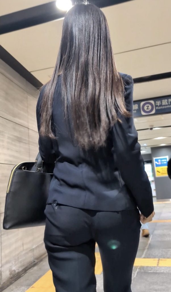【後ろからの眺め26】長身の美人OLのおっぱいとお尻をじっくり観察!