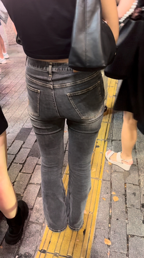 極上の女子大生のエロ尻を下から堪能!人気のジーンズから活きの良いスケベ尻をムニュらせ浮き出るクロッチで♂を挑発!