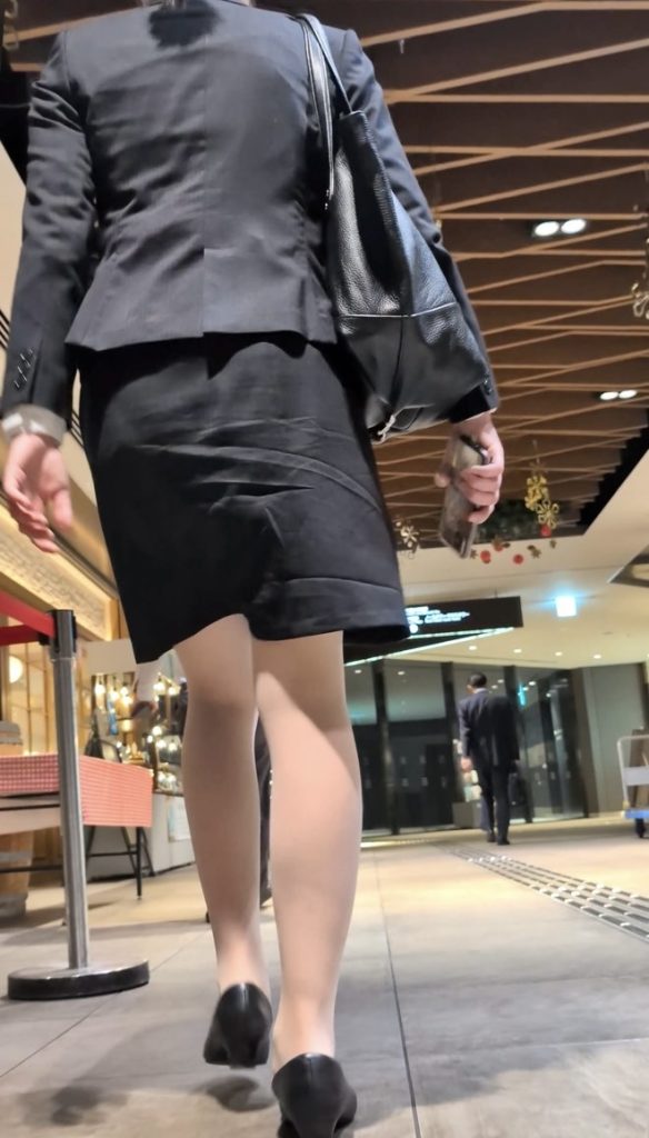【474】黒パンストのエレガントスーツOLさんの歩行をじっくりと!