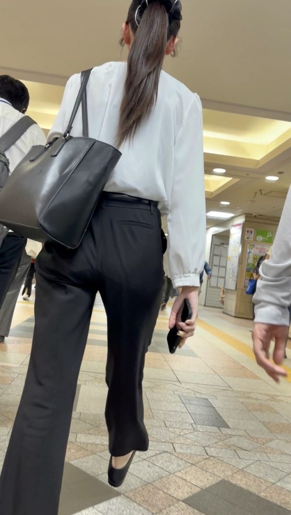【405】高スタイルの黒パンツOLさん、見事な陰影を見せつける階段登り!