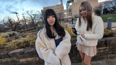 公園で踊っていた可愛い2人組に声をかけ鏡張りのスタジオで踊ってもらい反射でスカートの中身を写撃