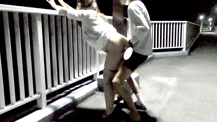 ぽっちゃりセフレと夜中に歩道橋で立ちバック&正常位に挑戦!
