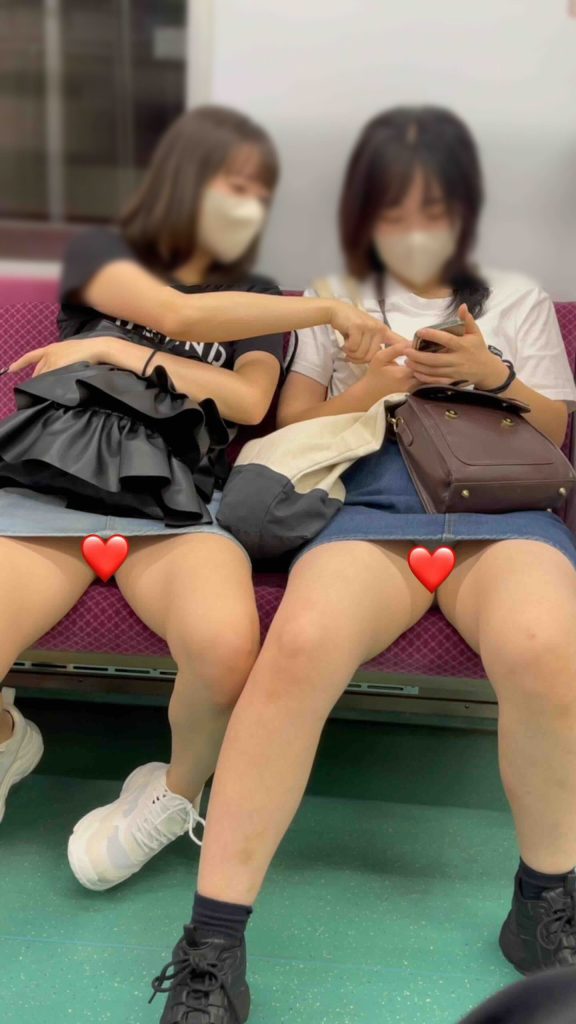 そんな面積のパンティを晒す!? 激ミニ美脚3人セット 電車対面パンチラ