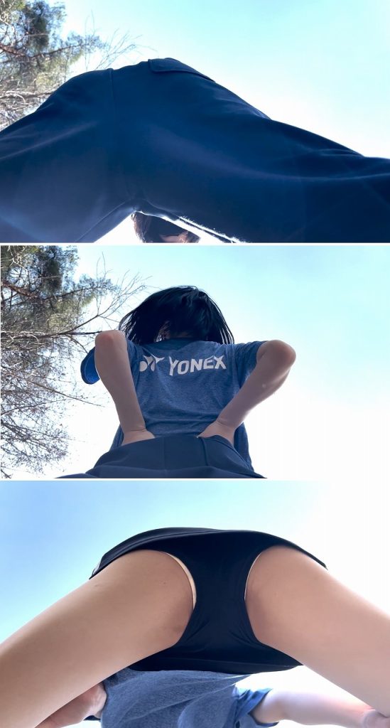 【テニスウェア】真下アングル!ストレッチしたら、透けパン、はみパン、すきまパン