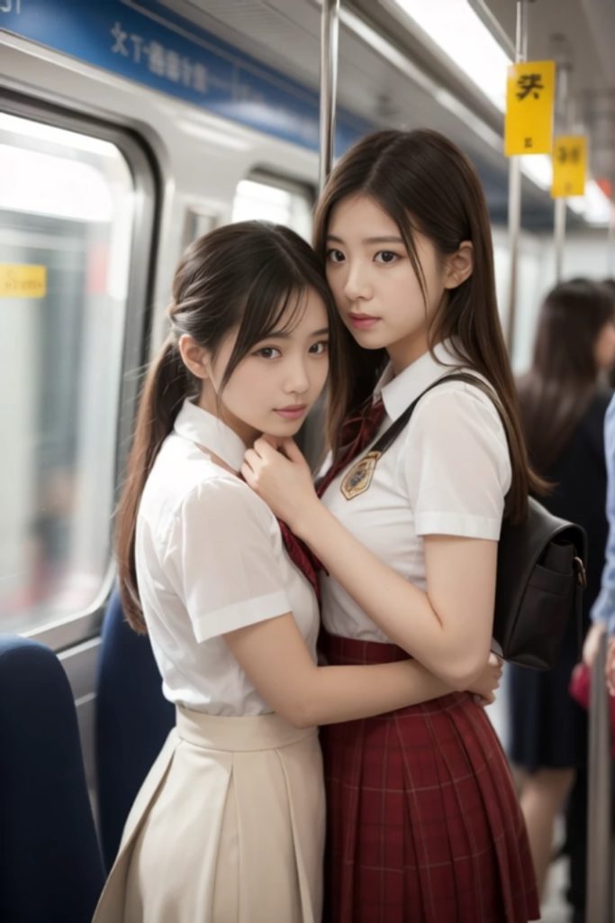 〖動画〗電車の中でおっぱいを出してイチャついているレズカップル!キスしたり裸で抱き合ったり♡
