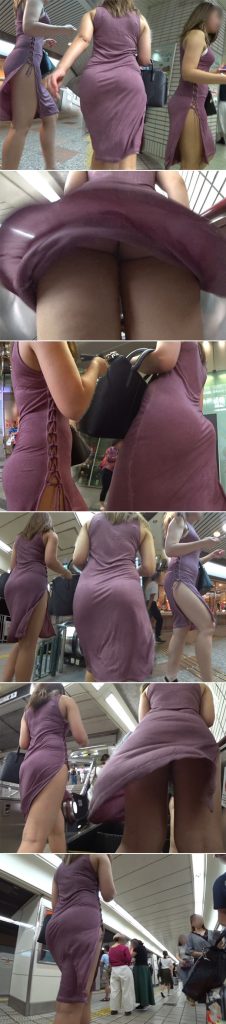 ブラまで丸見えな純白ワンピの女子vs目が合い逃げ惑う同業者【禁断の逆さ撮り】Vol.44