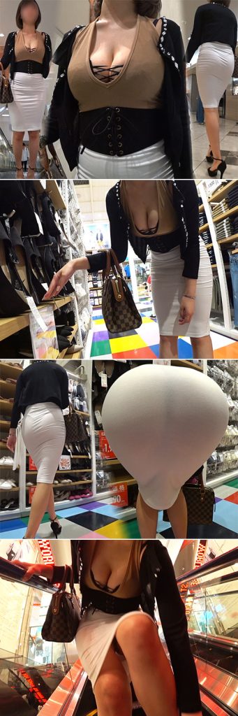 モデル級の超美人店員さん!!エロ過ぎる食い込みとお尻、乳首までも丸見え状態!!